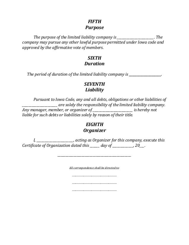 Certificate Of Organization Template Iowa