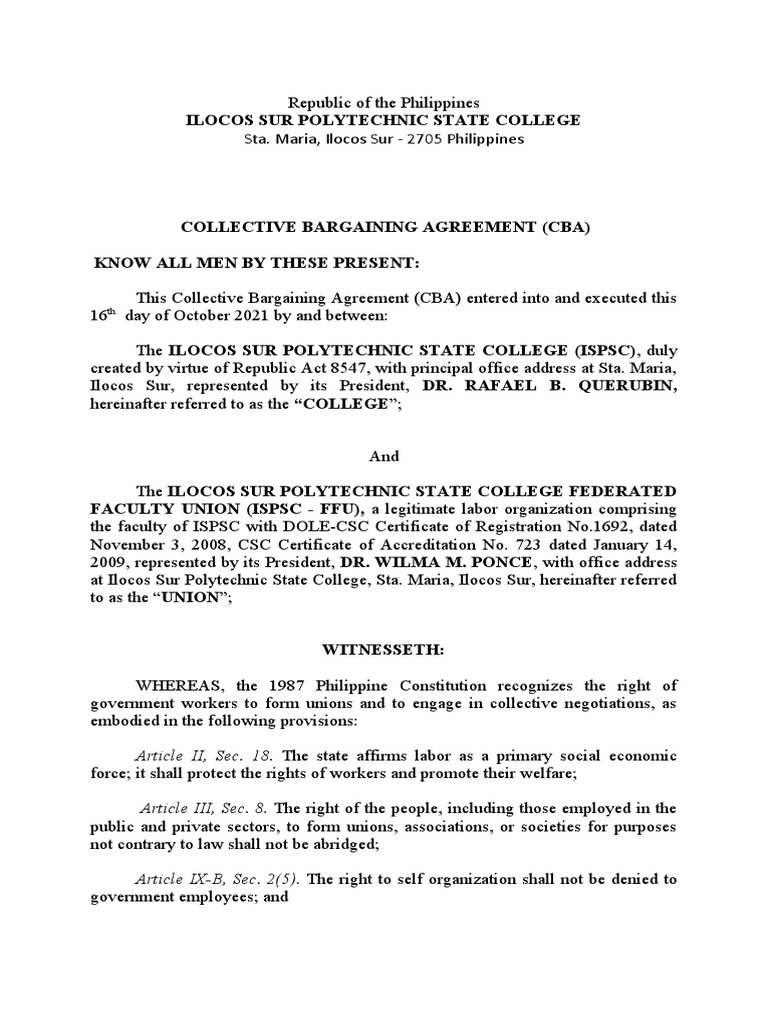 Collective Bargaining Agreement Template