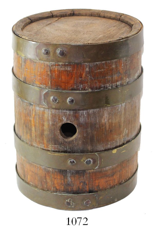 Brass bound oak gunpowder barrel English 1700s (Georgian)