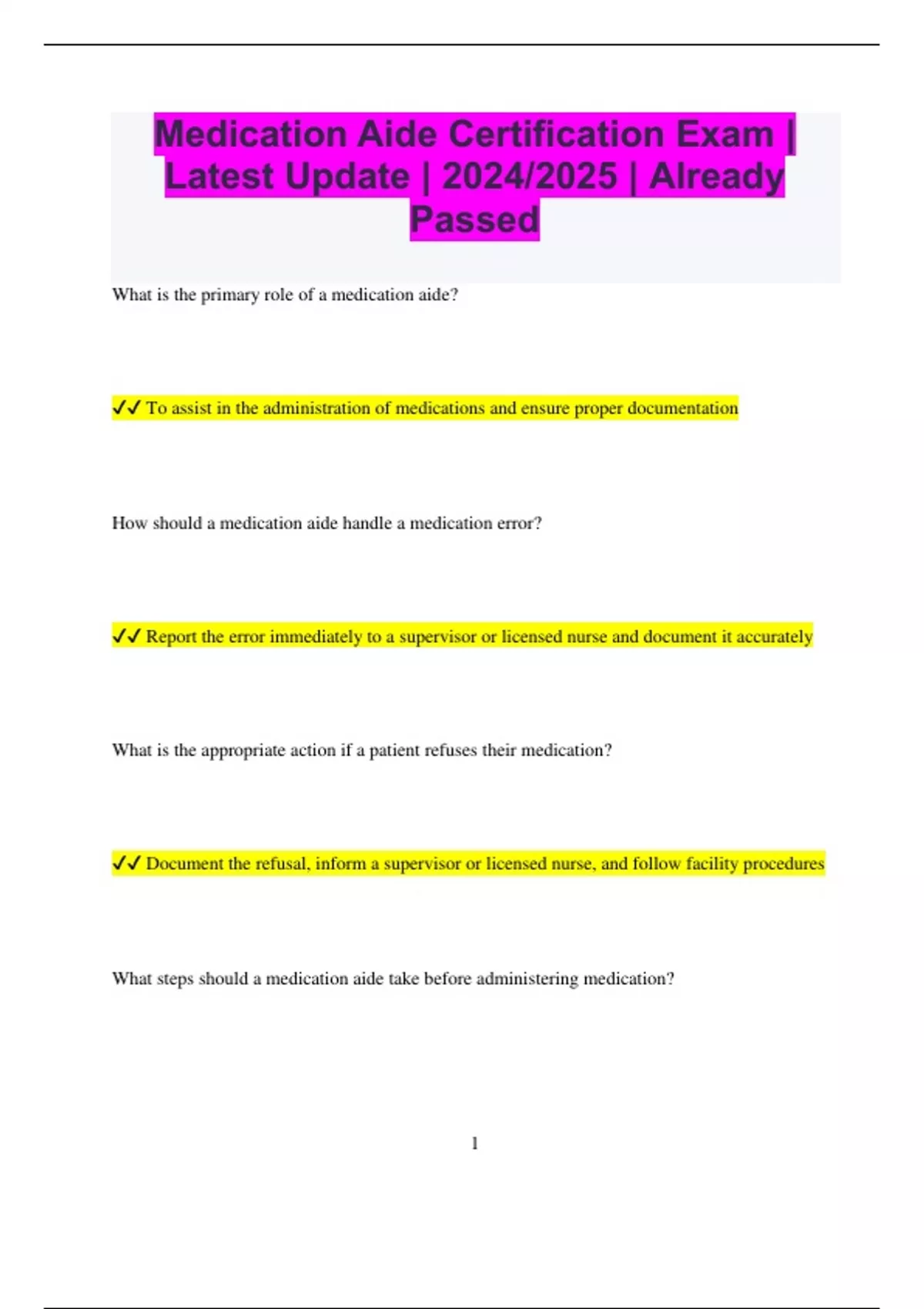 Medication Aide Certification Exam